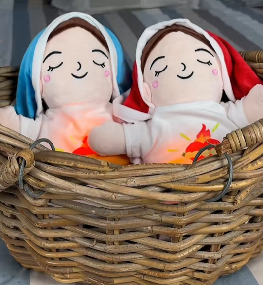 La Virgen María, este peluche brinda consuelo con su luz, música y movimiento. Perfecto para calmar la ansiedad, aliviar el insomnio y ofrecer un toque de paz en cualquier momento. Un abrazo lleno de fe y serenidad para tu bienestar