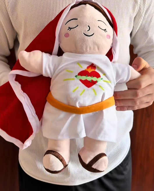 Con su pañuelo desmontable y materiales sostenibles, este peluche inspirado en la Virgen María te brinda tranquilidad y calma en cada noche. Ideal para aliviar la ansiedad y descansar profundamente